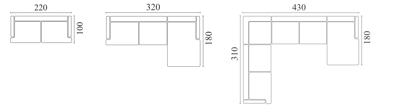 ПОПУЛЯРНЫЕ КОНФИГУРАЦИИ (размеры указаны в сантиметрах)