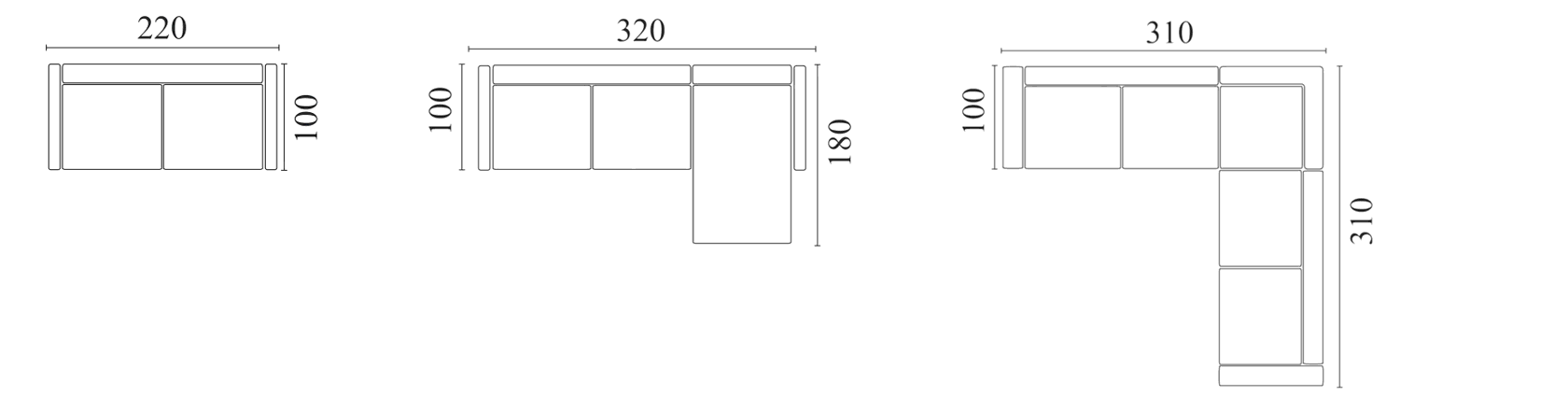 ПОПУЛЯРНЫЕ КОНФИГУРАЦИИ (размеры указаны в сантиметрах)