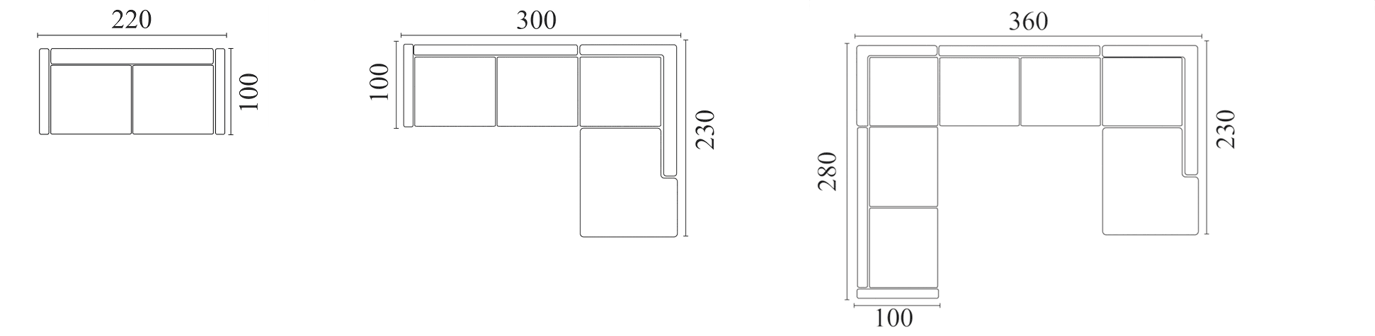 ПОПУЛЯРНЫЕ КОНФИГУРАЦИИ (размеры указаны в сантиметрах)